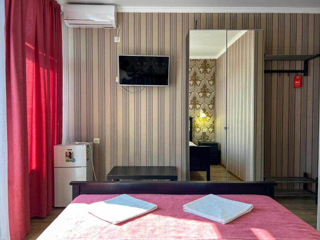 Номер оснащен кондиционером, холодильником и телевизором с плоским экраном и спутниковыми каналами. Этот номер более просторный.